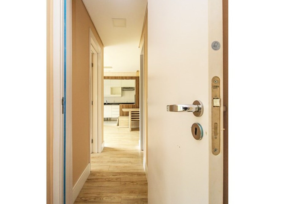 O apartamento está desocupado, tem privacidade nas janelas e incidência do sol pela manhã. São 2 dormitórios, sendo um deles suíte, 58m2, churrasqueira na cozinha, água quente. Vaga de garagem escriturada. A cozinha possui armários sob medida de ótima qualidade. Sala com dois ambientes, painel home teather instalado, canto alemão com baú, mesa espaçosa. O piso é vinílico. Rebaixo em gesso com iluminação. A suíte possui armários instalados com ótimo aproveitamento.