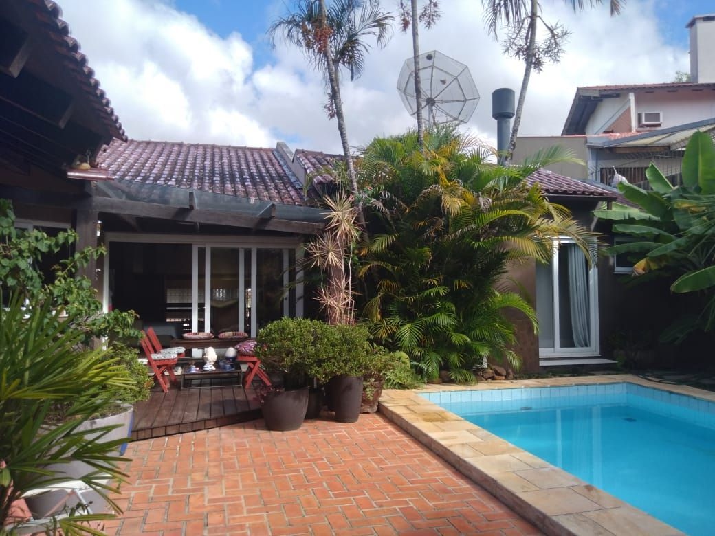 Casa em ótimo estado de conservação, C/ 3 dormitórios , suite c/ hidro, closet em 1 dorm, living c/ 2 ambientes, em tabuão, c/lareira, hall, lavabo, sala de jantar, 1 banheiro social, copa/cozinha, dorm. empregada, despensa, wc auxiliar, área serviço c/ esp p/ maquina, água quente, espera p/ar parede, esquadrias emmadeira pintada Jardim, Gradil, piscina, salão de festas, churrasqueira, Semi mobiliada, pronta para morar. Modernamente decorada, cozinha gourmet montada, lavanderia, adega, salão c/ churrasqueira e forno para pizza.