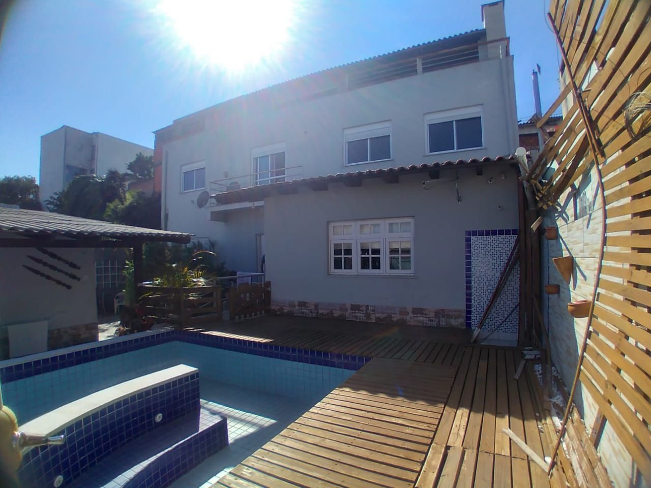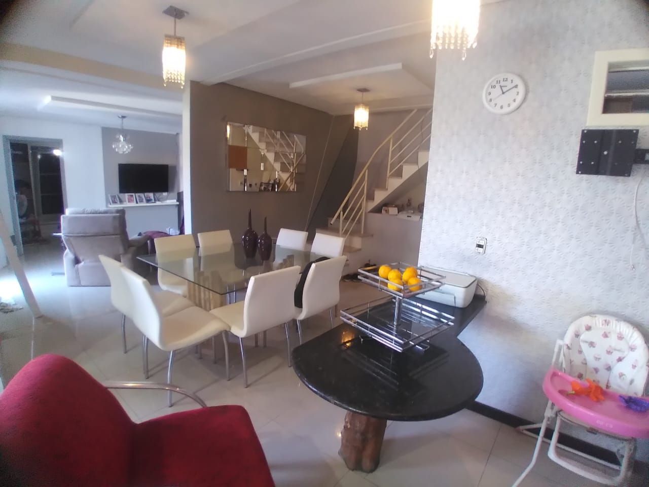 No segundo pavimento, conta ainda com uma ampla sacada com churrasqueira, escritório e área de serviço complementam os ambientes funcionais da casa, com aparelhos de ginastica.