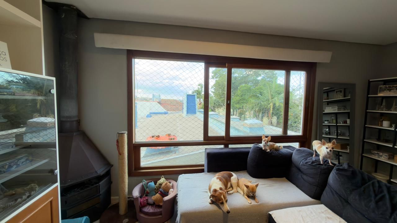 Segundo pavimento com ampla sala, com linda vista, móveis planejados fixos e espera para lareira; cozinha com móveis sob medida, equipada com forno, depurador e cooktop; área separada com churrasqueira; área de serviço para estender roupas e lavabo.
