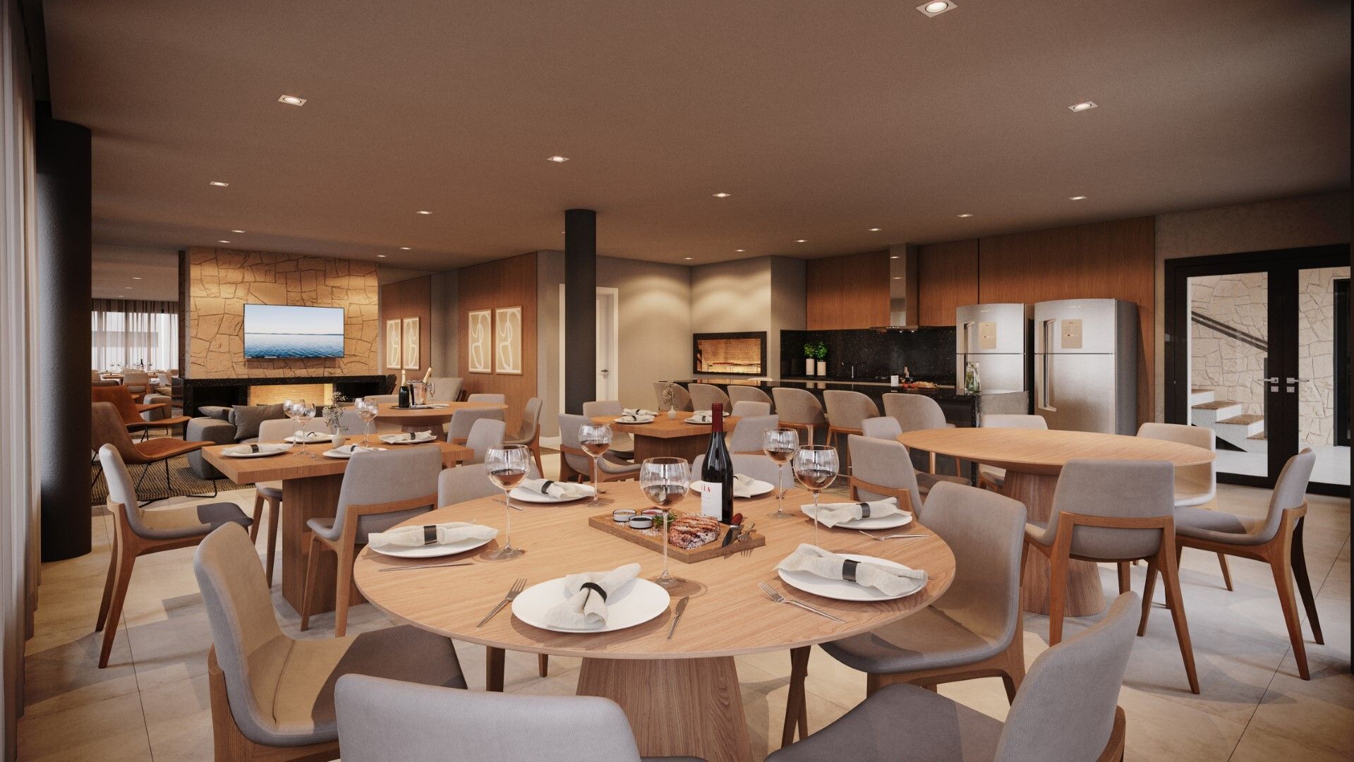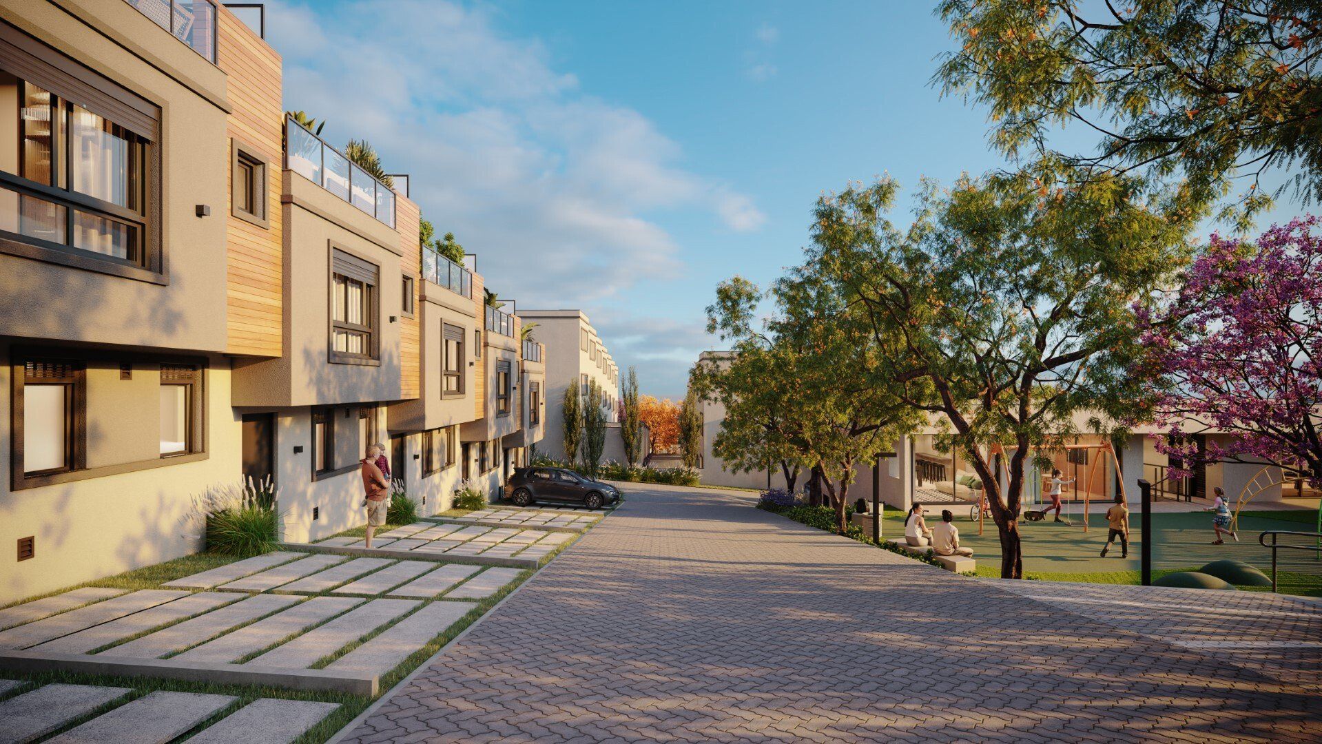 Casas com 2 e 3 Dorms com áreas de 150 a 173 m², pátio com churrasqueira, 3º pavimento com terraço e opções de uso, espera para lareira, piscina e/ou spa