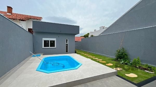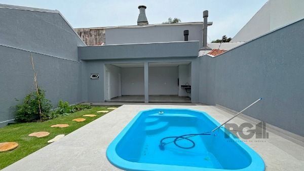 Dispõe de espaço gourmet, pátio com piscina, edícula com banheiro e depósito, além de vaga para até 4 carros.
