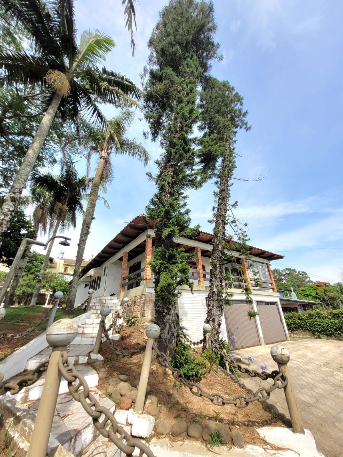 Excelente residência, 3 dormitórios (2 suítes), living 3 ambientes c/lareira (em tabuão), sacada c/linda vista, estar íntimo, lavabo, sala de jantar, copa/cozinha e dependência de empregada. Construção sólida em terreno alto com área de 1.000m²