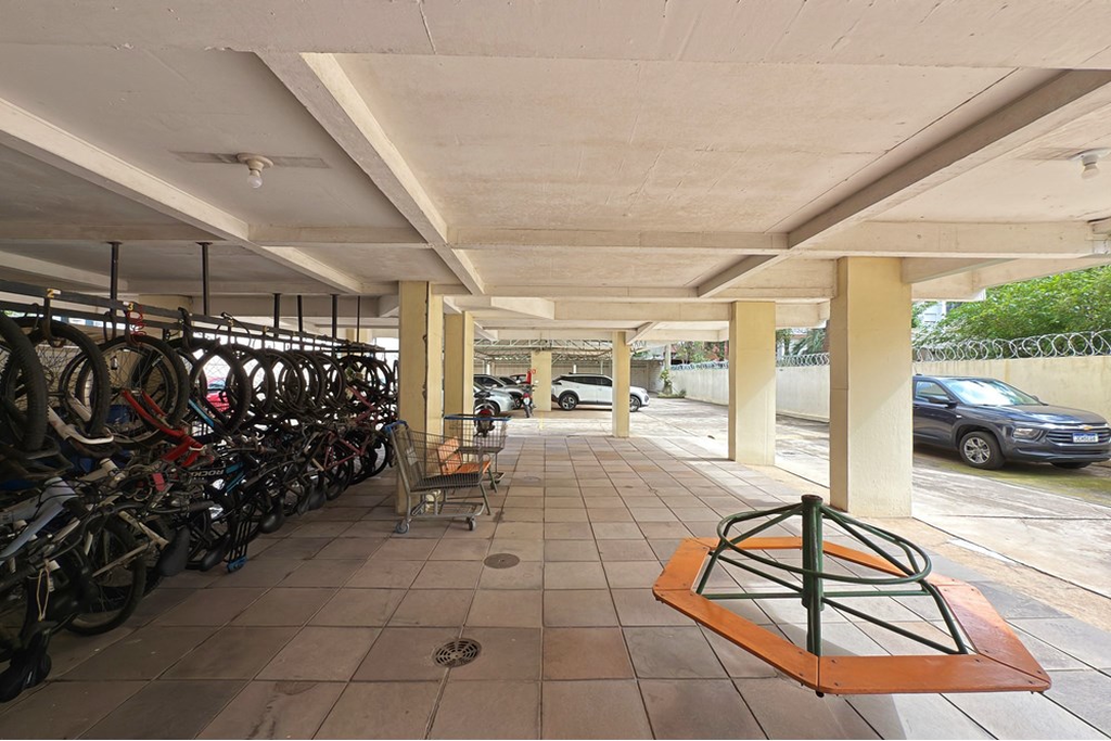 O prédio conta com elevador, portaria 24hs, jardim e baixo custo condominial. O condomínio ainda oferece opção de vaga rotativa, com valores acessíveis (R$ 25/dia ou R$ 235/mês).