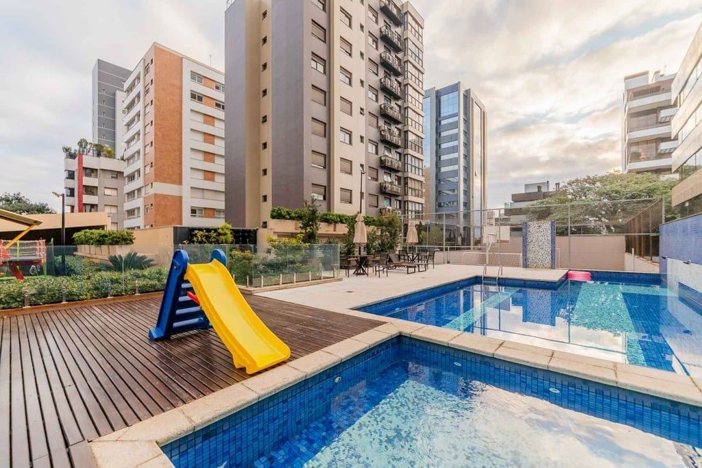 Apresentamos um sofisticado apartamento no bairro Petrópolis, com 266 m² de área privativa, oferecendo três suítes, incluindo uma suíte master com closet, banho ele/ela e lareira. Existe ainda a opção de uma quarta suíte ou escritório. O imóvel inclui três vagas de garagem, garantindo conveniência e exclusividade. A área social deste apartamento é verdadeiramente excepcional, com um elevador privativo e panorâmico que dá acesso ao exclusivo hall de entrada. O living, composto por três ambientes, é integrado ao espaço gourmet com churrasqueira, lareira, lavabo e sacada, proporcionando um ambiente ideal para entretenimento e conforto. A ampla copa-cozinha, área de serviço e dependência de empregada completa possuem acesso ao elevador de serviço, oferecendo praticidade e funcionalidade. A área íntima conta com três suítes. A suíte master é um verdadeiro refúgio de luxo, com banho e closet ele/ela, banheira e lareira, além de espaço suficiente para um gabinete privativo. As outras duas suítes oferecem conforto adicional, sendo uma delas com sacada. O empreendimento possui uma fachada contemporânea, com detalhes em ACM (alumínio composto de alta durabilidade), e um elevador panorâmico codificado. A infraestrutura de lazer é completa, incluindo salão de festas com churrasqueira, integrado a um lindo longe externo com lareira e churrasqueira, fitness center, brinquedoteca, playground, piscina adulto e infantil (sendo a infantil aquecida) e quadra poliesportiva. Localizado nos altos do bairro Petrópolis, em uma das ruas mais arborizadas, este apartamento oferece um ambiente de luxo, conforto e tranquilidade. Agende sua visita e descubra a excelência deste imóvel exclusivo. Preço e disponibilidade do imóvel sujeitos a alteração sem aviso prévio.