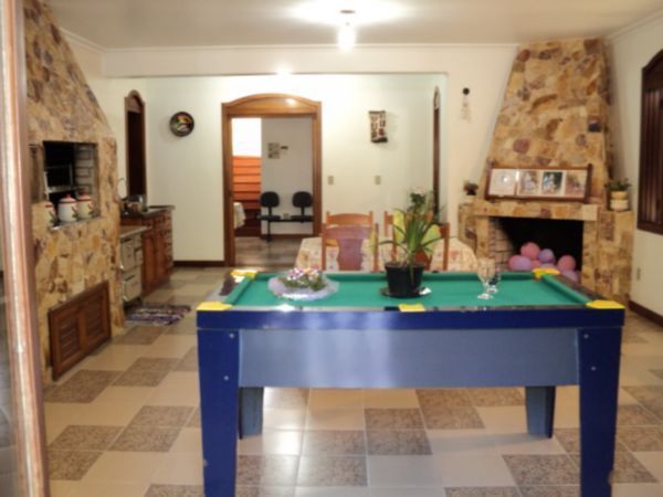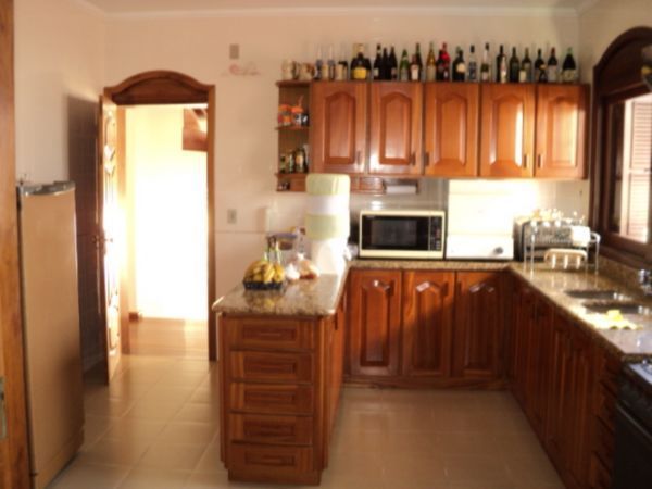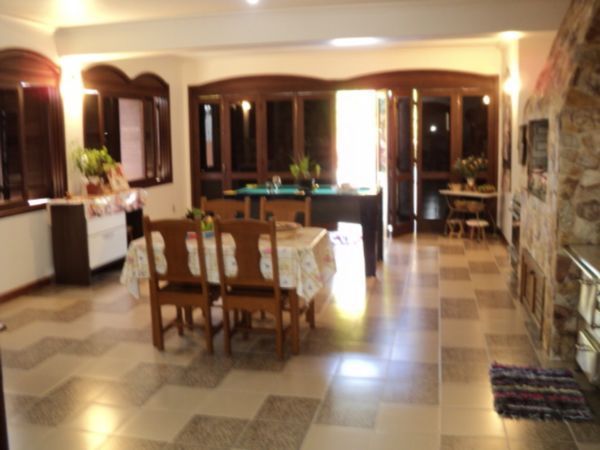 Residência ampla, 4 dormitórios, 2 suítes, living 4 ambientes (em tabuão Ipê) em níveis diferenciados, amplo estar íntimo, sala de jantar, copa/cozinha montada, gabinete e terraço. Dois dormitórios e suíte são servidos por banheiro social c/hidro. A suíte do casal apresenta hidro dupla, closet e bela vista p/o rio. Pátio c/piscina e quiosque c/churrasqueira. Com aquecimento solar, 4 garagens e adega.